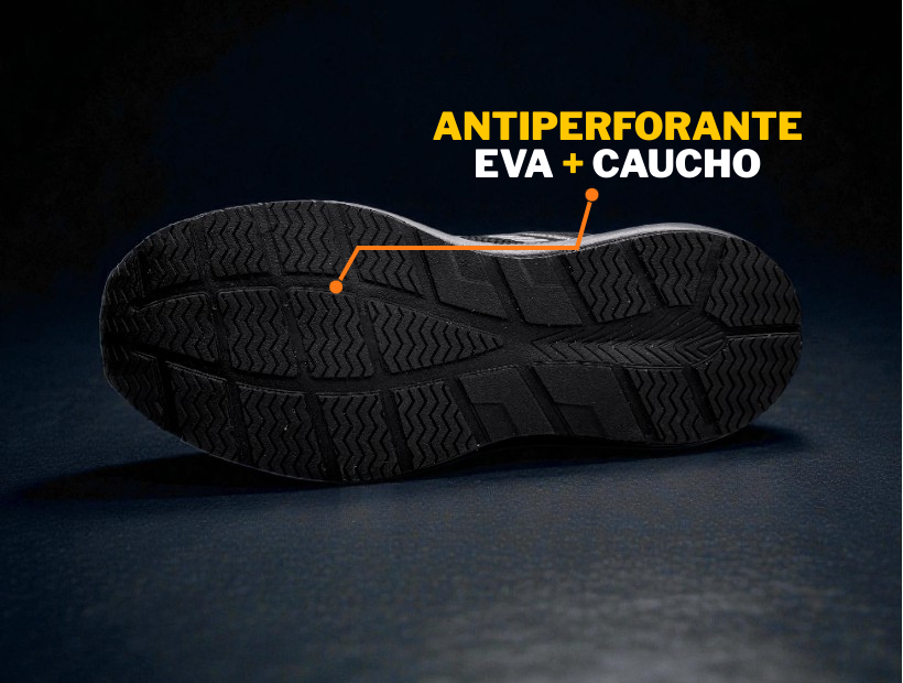 Esta no es sólo una característica práctica; es una solución cinética que celebra la ingeniería honesta. Perfectamente integrado en esta estructura robusta se encuentra la protección antiperforante de 1100N. Estratégicamente posicionada y protegida por múltiples capas, garantiza una resistencia total a objetos punzantes.