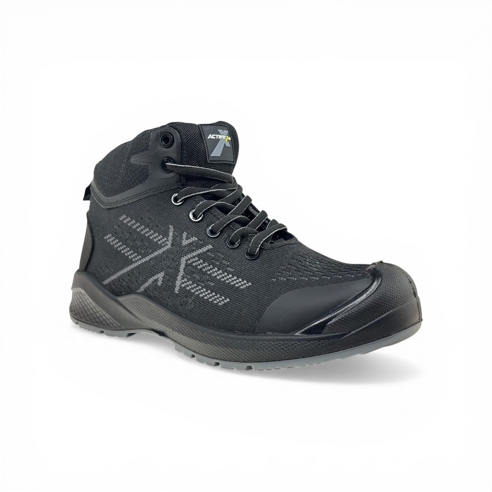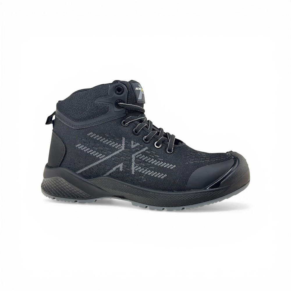 El Botín de Seguridad Activex AX1 está diseñado para profesionales que requieren una combinación única de transpirabilidad, flexibilidad y protección certificada en entornos laborales exigentes. Su innovadora capellada de tejido Flyknit ofrece una ventilación excepcional, ligereza y un ajuste cómodo que se adapta al movimiento natural del pie, mientras que la altura de caña de 130 mm brinda soporte al tobillo sin limitar la movilidad.