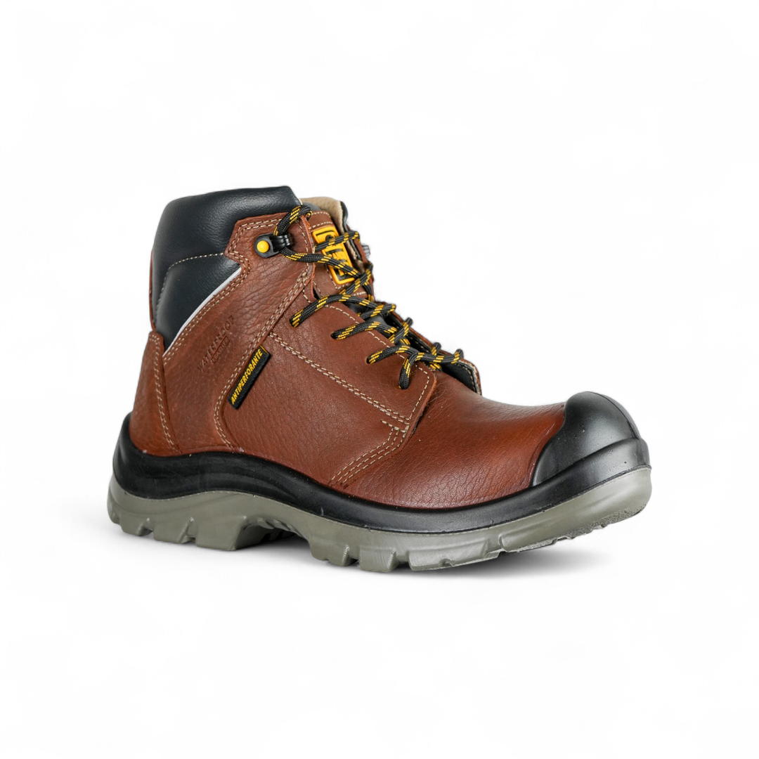 El Botín de Seguridad Modelo EROS es la opción ideal para quienes requieren un calzado de protección de alta calidad y resistencia. Fabricado en cuero hidrofugado de res 100%, este botín cuenta con una capellada de 2.2 mm, lo que le otorga durabilidad y resistencia en condiciones laborales exigentes. Este tipo de cuero hidrofugado proporciona una mayor resistencia al agua y a la humedad, asegurando que el calzado se mantenga en condiciones óptimas incluso en entornos húmedos.