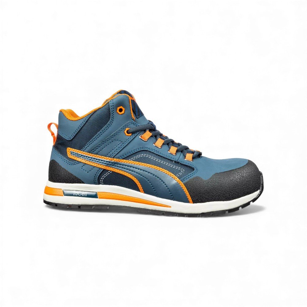 El Botín de Seguridad Puma Crosstwist Mid combina rendimiento, comodidad y alta protección. Diseñado con capellada de cuero y textil en tonos azul–naranja, incluye puntera de fibra de vidrio, entresuela antiperforante FAP® y suela de caucho URBAN HRO, resistente al calor hasta 300°C. Su forro BreathActive mantiene tus pies frescos y secos, mientras que la plantilla evercushion® ofrece soporte ergonómico. Con certificación EN ISO 20345 S3 HRO SRC y recubrimiento moldeado en dedos y talón, este botín garantiza máxima seguridad y confort para jornadas intensas. Ideal para industria, construcción, logística y más. 🦺🔥