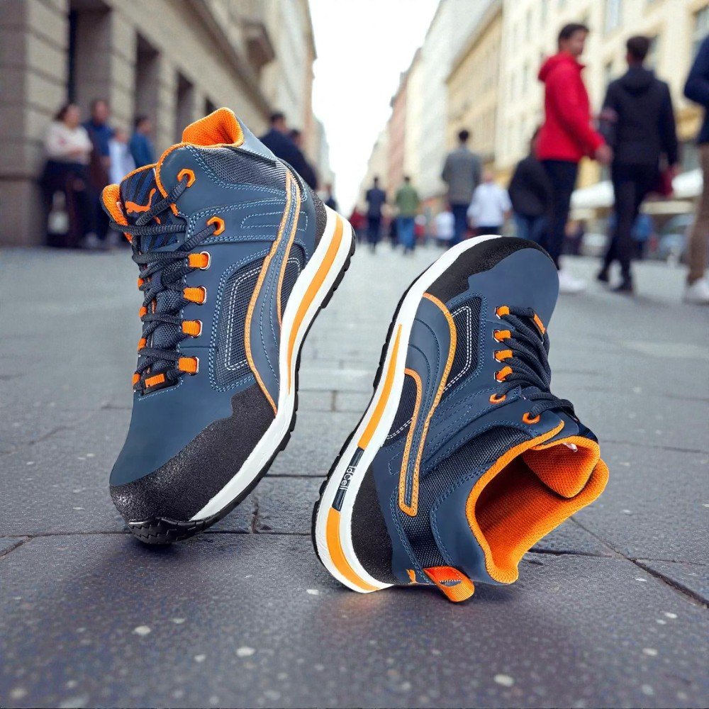 Su capellada de cuero y textil con protección moldeada en los dedos y talón proporciona resistencia extra ante el desgaste, y su combinación de colores azul–naranja ofrece un estilo moderno y llamativo. El forro BreathActive asegura una excelente transpirabilidad, manteniendo un clima interno equilibrado durante toda la jornada.