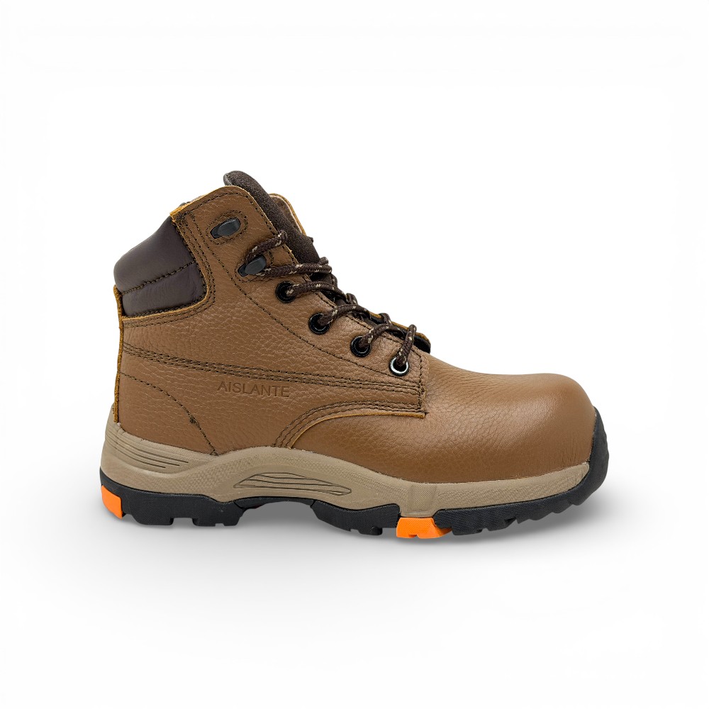 Fabricados con cuero de alta resistencia, ofrecen durabilidad superior frente a la abrasión y el desgaste diario. Incorporan puntera de composite ultraliviana —no metálica, aislante eléctrica y térmica—, brindando protección contra impactos sin conducir electricidad. Su suela antideslizante y resistente a hidrocarburos garantiza un agarre seguro y estable en superficies contaminadas con aceites, grasas o combustibles.