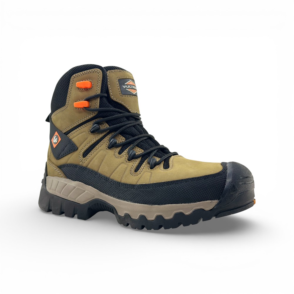 Fabricado con cuero Nobuck de alta resistencia en tono VERDE OLIVO, este botín garantiza durabilidad superior frente a la abrasión, la humedad y el desgaste diario en terrenos irregulares. Su color táctico y funcional ofrece un excelente camuflaje en entornos naturales y disimula eficazmente el barro, el polvo y las manchas propias del trabajo en campo, manteniendo una apariencia profesional por más tiempo.