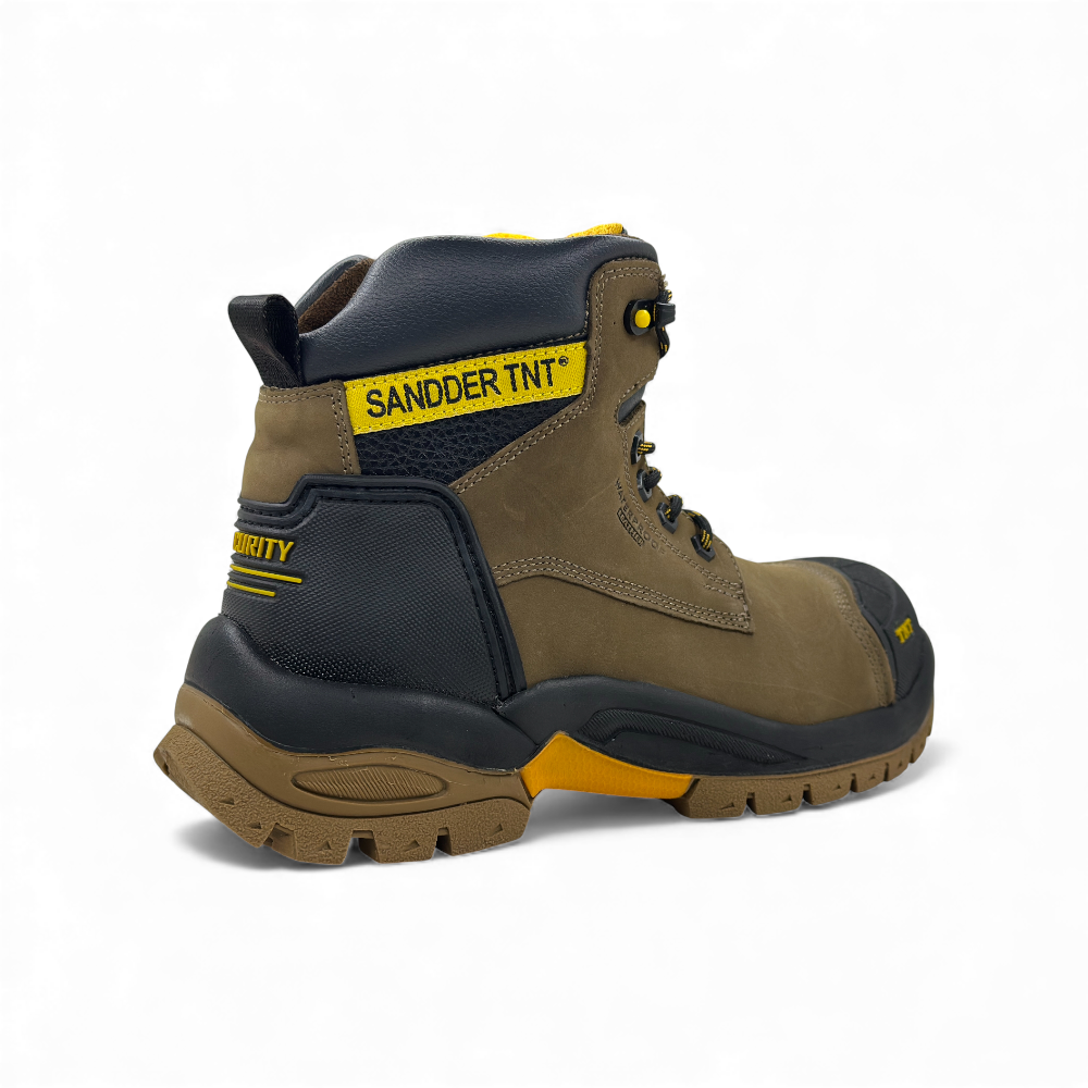 El Botín de Seguridad Dieléctrico Templario Térmico de Sandder TNT está diseñado para ofrecer una protección y confort excepcionales en condiciones laborales extremas. Con una capellada de cuero a plena flor de 2.2 mm, este botín combina durabilidad con resistencia, protegiendo contra impactos, abrasiones y condiciones adversas. Su puntera de fibra de vidrio asegura una resistencia al impacto de 200 J y compresión de 15 kN, mientras que su plantilla antiperforante de Kevlar protege los pies de objetos punzantes con una resistencia de hasta 1100 N.