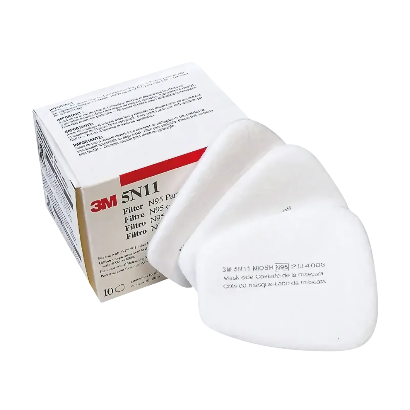 El Prefiltro 5N11 3M es aprobado por NIOSH con la especificación N95, lo que significa que filtra al menos el 95% de las partículas en el aire, incluyendo polvos y nieblas no aceitosas. Sin embargo, no es adecuado para entornos con gases o vapores tóxicos o concentraciones de partículas superiores a 10 veces el límite de exposición permisible (PEL). Este prefiltro ayuda a reducir los costos, ya que se puede reemplazar sin la necesidad de cambiar los cartuchos, y es fácil de instalar sin necesidad de capacitación avanzada.